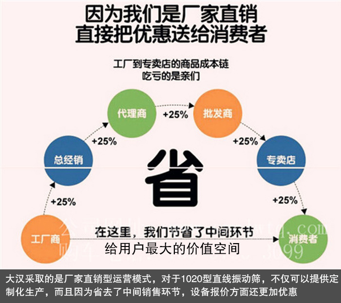 大汉振动机械采取的是厂家直销型运营模式,对于1200型旋振筛,不仅可以提供特殊订制生产,而且因为省去了中间销售环节,设备报价方面还更加优惠,保证让您以较低的价格购得满意的旋振筛设备。