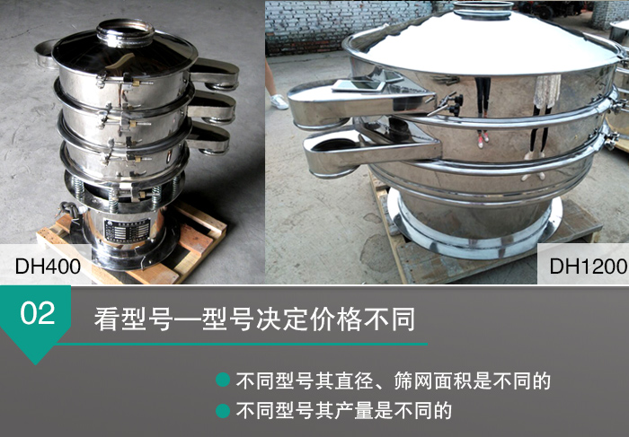 新乡大汉全不锈筛振动筛生产的直线振动筛型号从DH600到DH2000,不同型号的全不锈钢振动筛,其直径、筛网面积是不同的,所以这就决定了不同型号的全不锈钢振动筛产量是不同的,这也必然会造成全不锈钢振动筛价格上存在明显的差异。