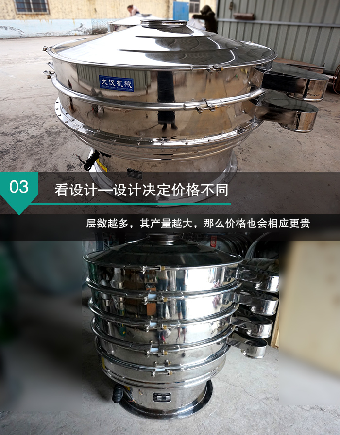 由此可见,全不锈钢振动筛从型号、层数上都有如此多的差异,所以其价格的设定难免会有所波动,具体价格还需结合用户的实际选型情况进行设定,用户可点击在线咨询获取新报价信息,另外,也可携带物料进行免费试机,大汉提供专车接送服务,欢迎您随时莅临指导。